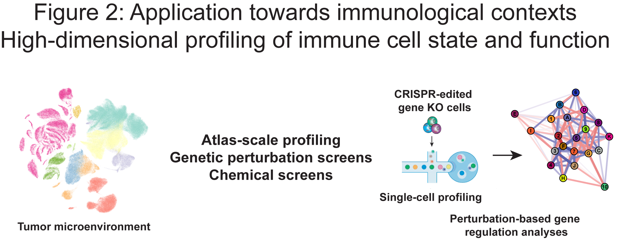 Our research aims to understand how gene regulatory programs control immune cell fate and function. By integrating perturbation-based screens with multi-modal single-cell profiling, we systematically dissect the genetic and epigenetic mechanisms that govern cell state, differentiation and function (Figure 2). In parallel, we apply these cutting-edge approaches to profile patient-derived samples, enabling us to characterize immune dysregulation in disease contexts and link regulatory mechanisms to relevant cell states (Figure 2).