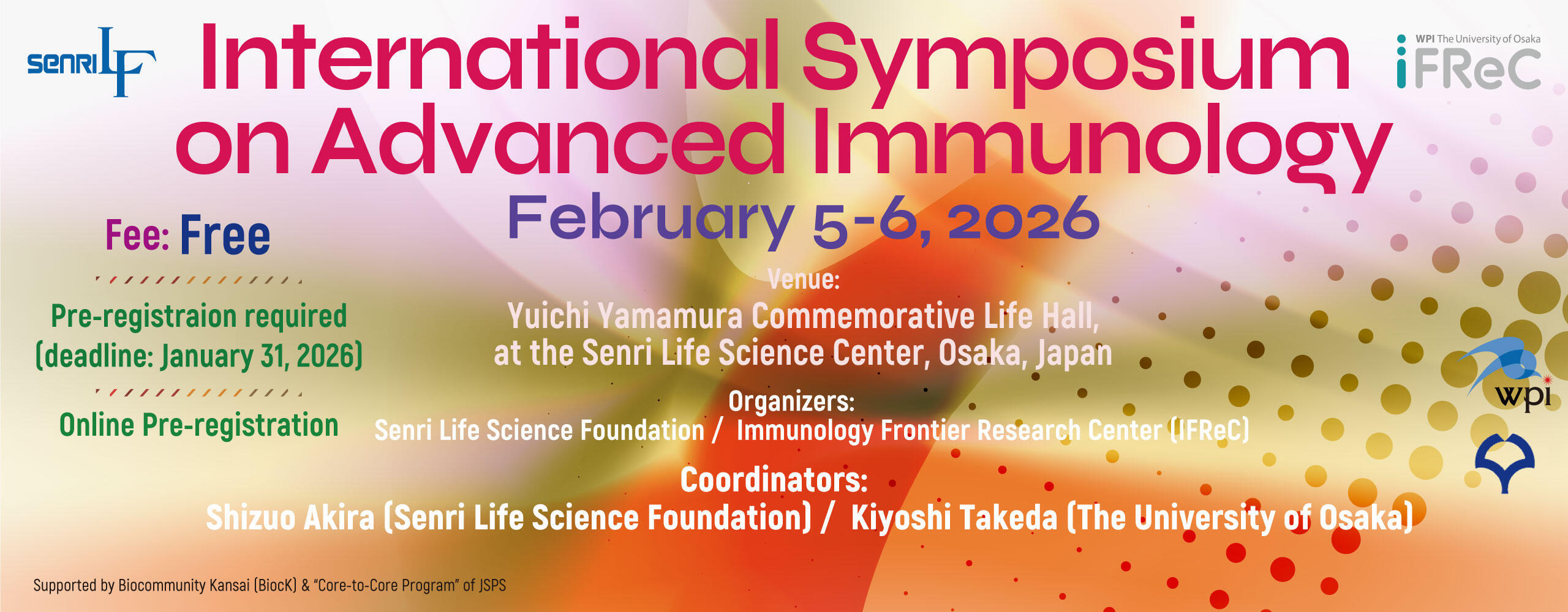 The 15th International Symposium on Advanced Immunology co-organized by Senri Life Science Foundation and WPI-IFReC